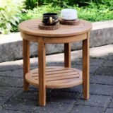 Create the perfect spot to enjoy snacks and drinks with this charming round outdoor side table from our Heaton collection. Featuring a distinctive design with round aprons and grooved legs, this table is handcrafted from high-quality solid Indonesian teak wood. Its versatile round shape makes it an ideal choice for any outdoor space, including your patio, poolside, pergola, or under a gazebo. Whether you’re relaxing by the firepit or enjoying a sunny day by the poolside, this round teak outdoor side table offers both style and functionality. Its elegant design and practical features make it a great addition to any collection of patio side tables or outdoor side tables.