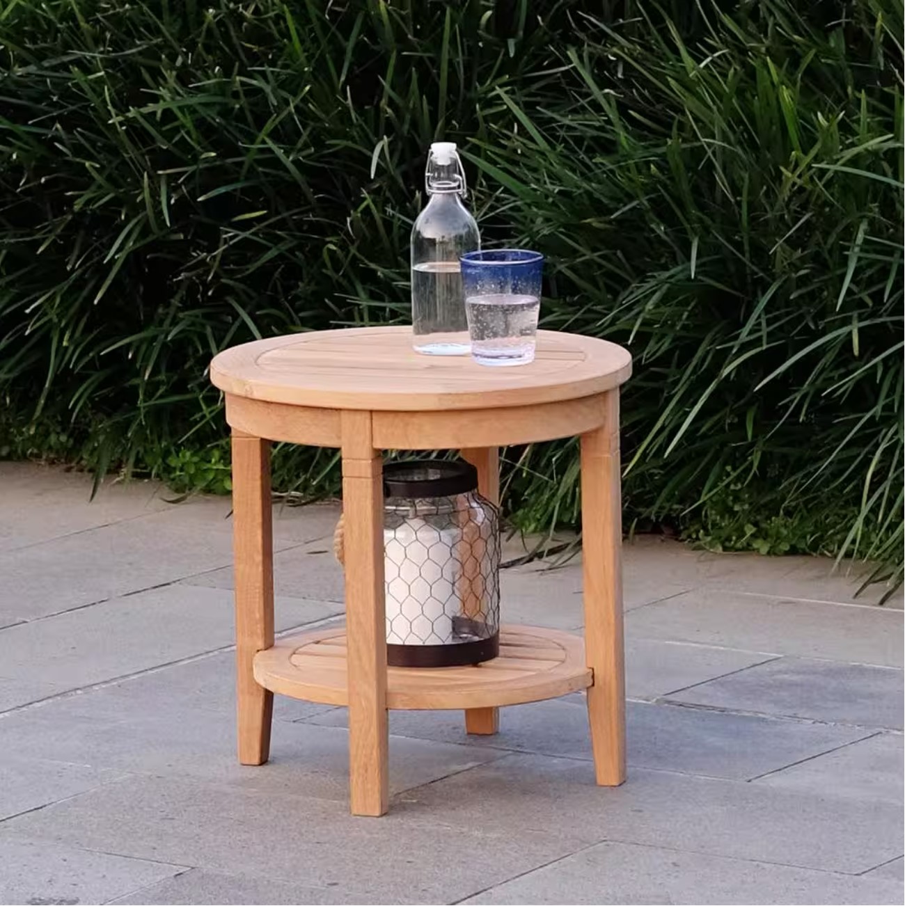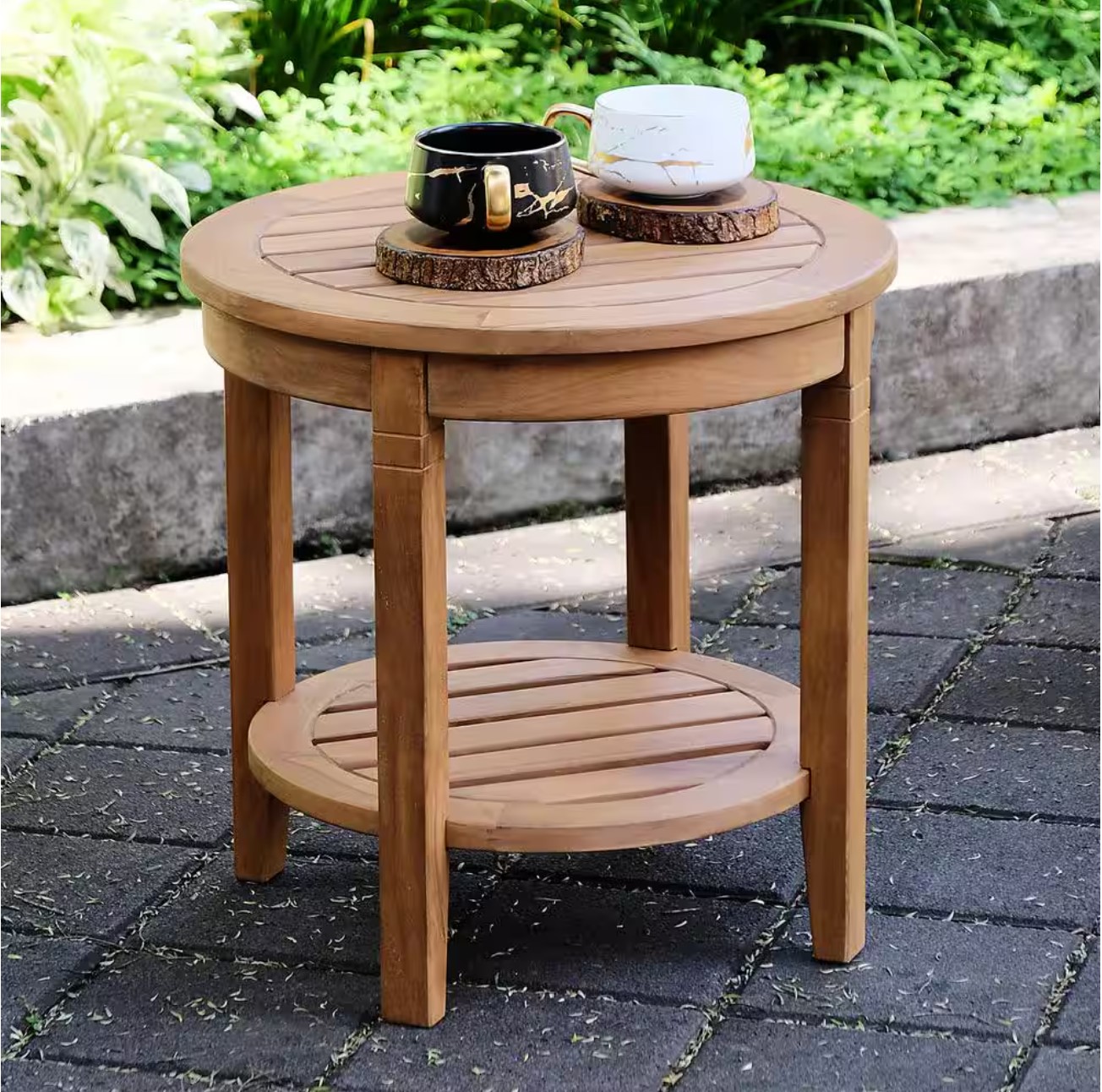 - Ideal as a natural teak side table for both outdoor and indoor use