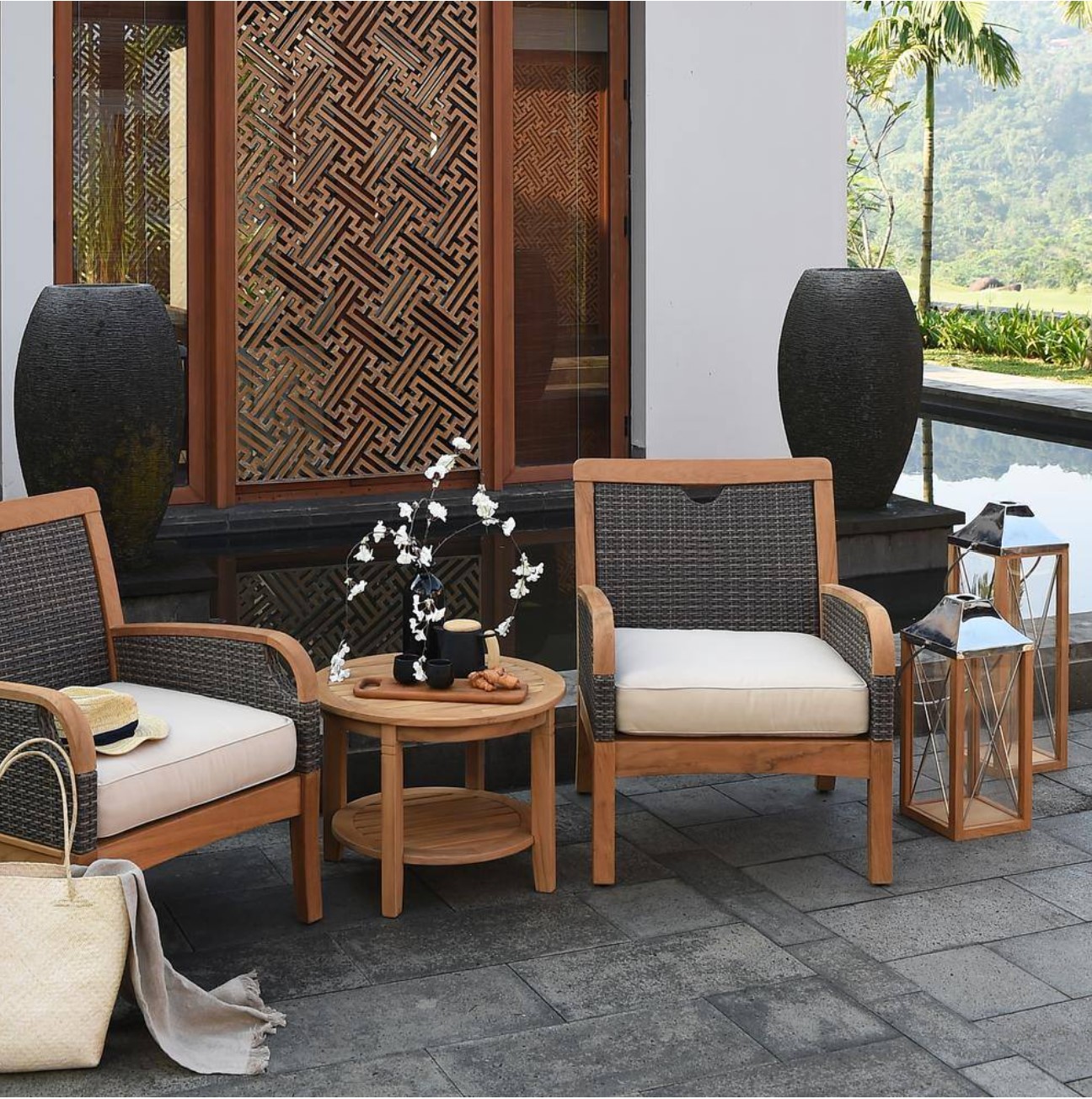 - Features a beautifully smooth, natural teak finish that brings warmth and organic elegance to any patio or garden space